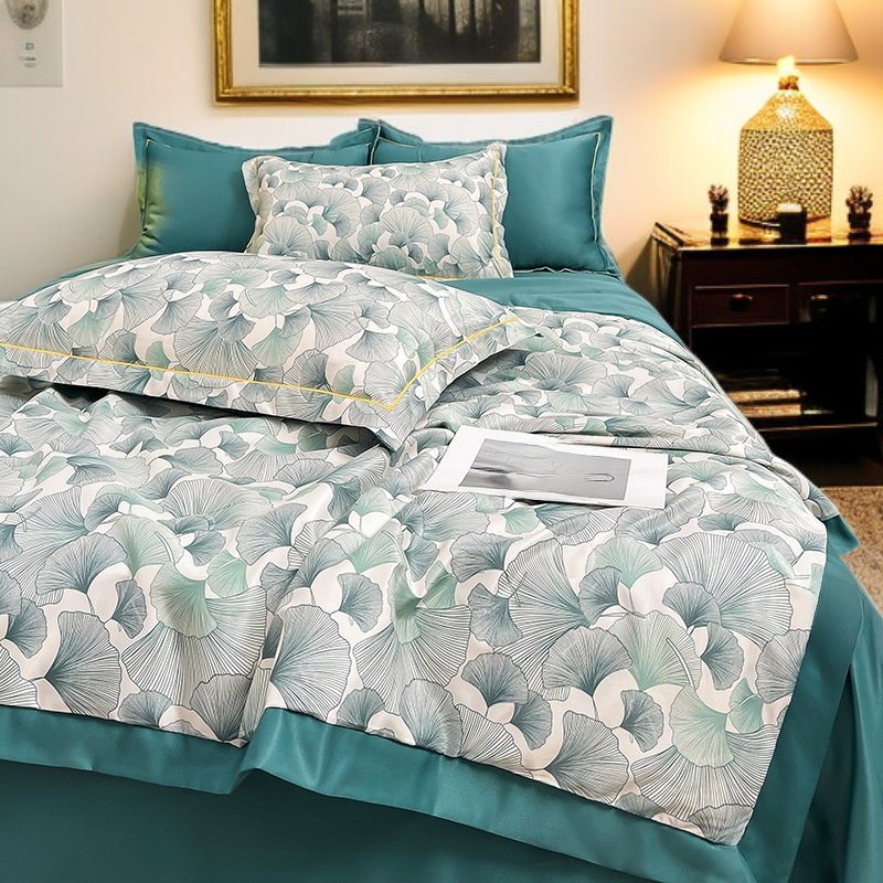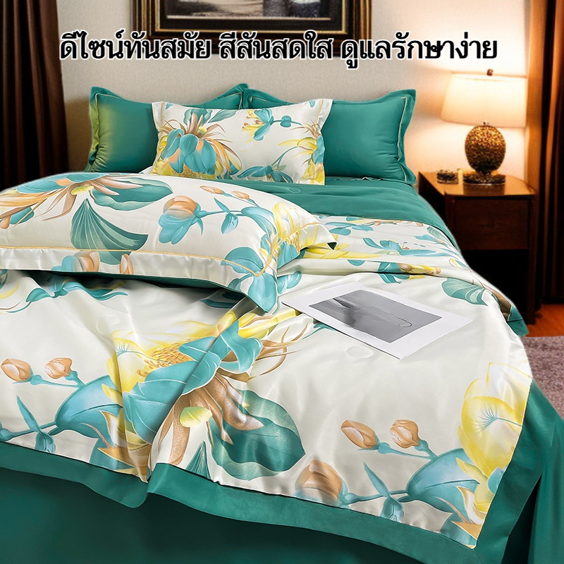 ชุดเครื่องนอนผ้าเทนเซลซักน้ำใหม่ ผ้าห่มบางฤดูร้อนสำหรับนอนเปลือย ผ้าไหมเย็นสำหรับเตียงเดี่ยวและคู่
