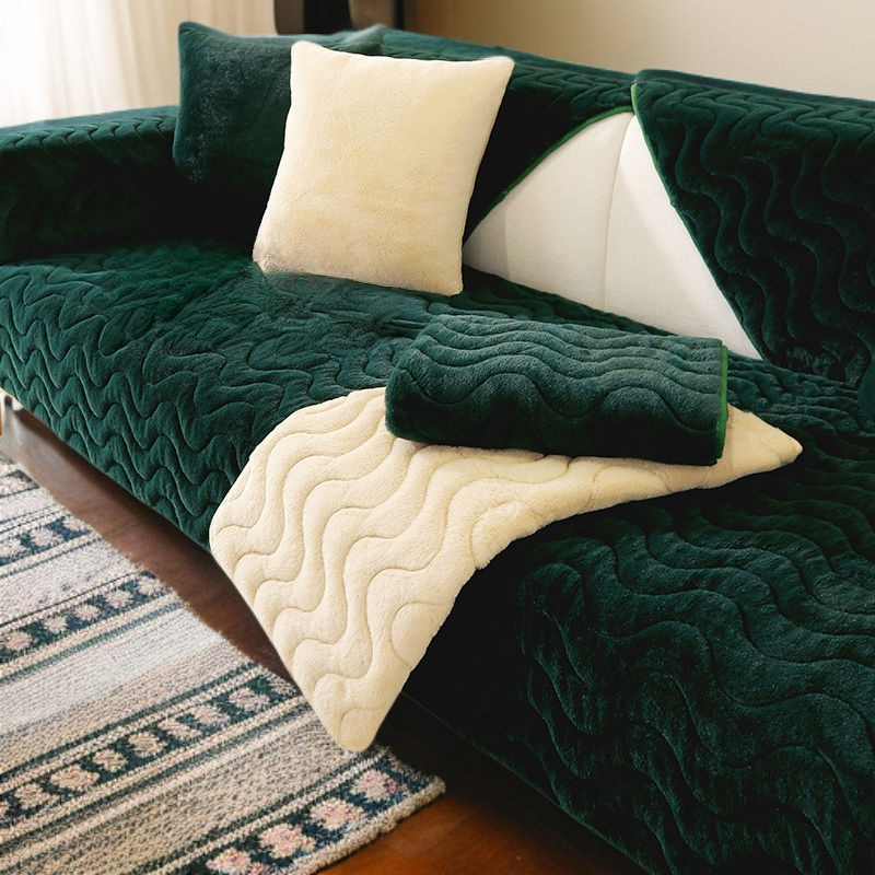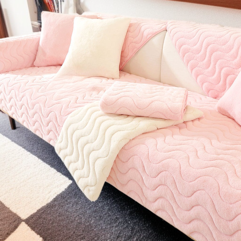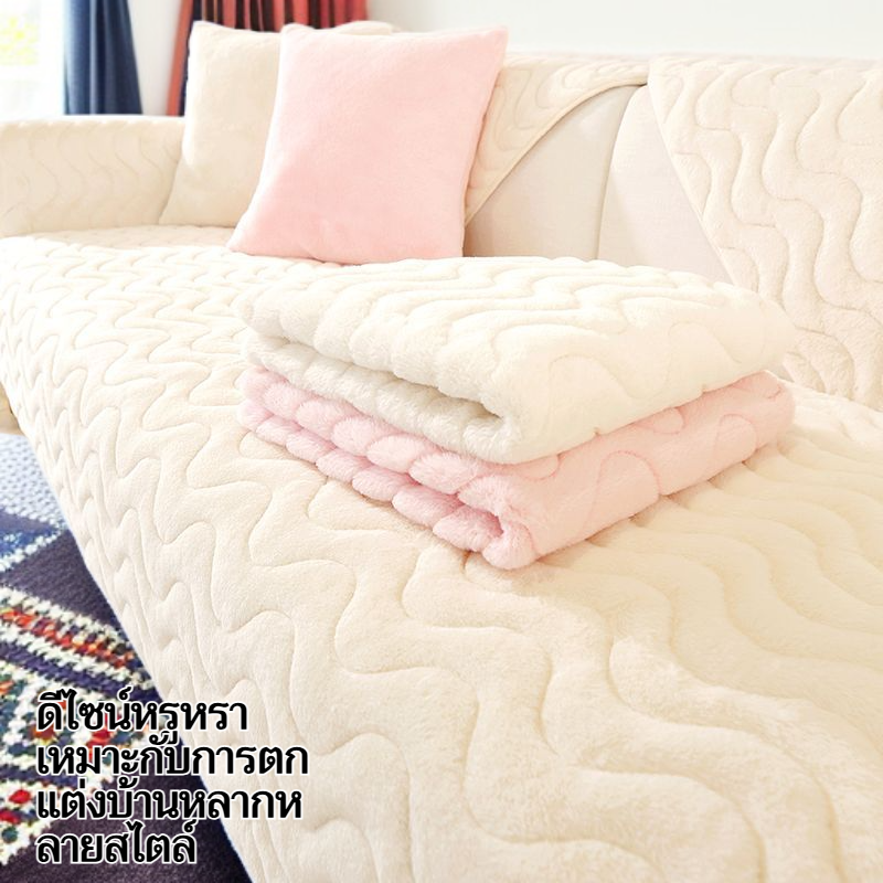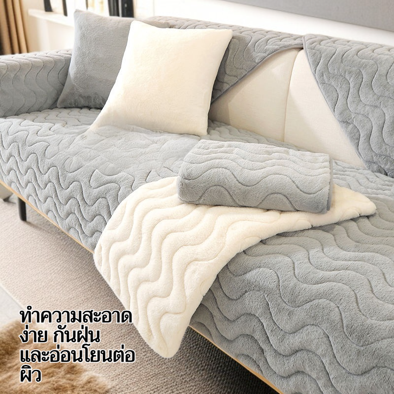 เบาะรองโซฟาขนกระต่ายหนาพิเศษ สไตล์นอร์ดิก เรียบหรู กันลื่น สำหรับฤดูหนาว